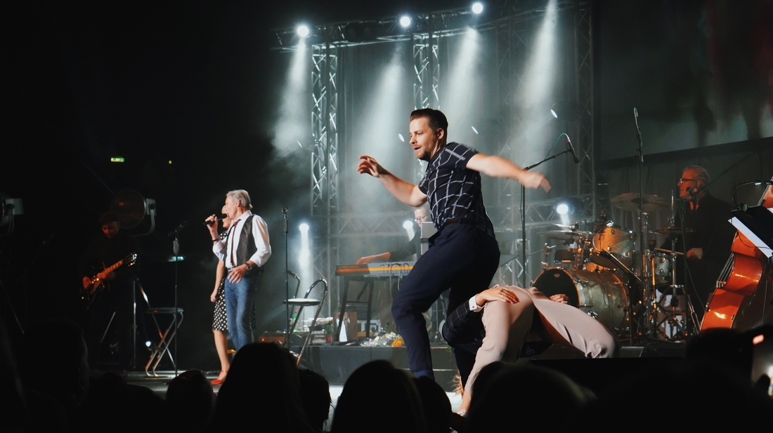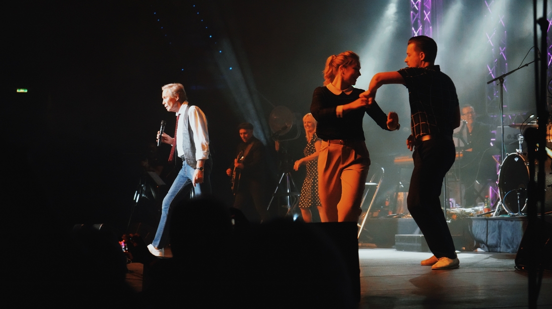 Einer der Höhepunkte des Abends war ein mitreißendes Rock'n'Roll-Medley, bei dem Andreas und Elsa gemeinsam mit Peter Kraus die Klassiker Blue Suede Shoes, Rip it Up und Great Balls of Fire performten. Das Publikum ließ sich von ihrer Energie mitreißen und feierte den Musiker und Tänzer mit tosendem Applaus.