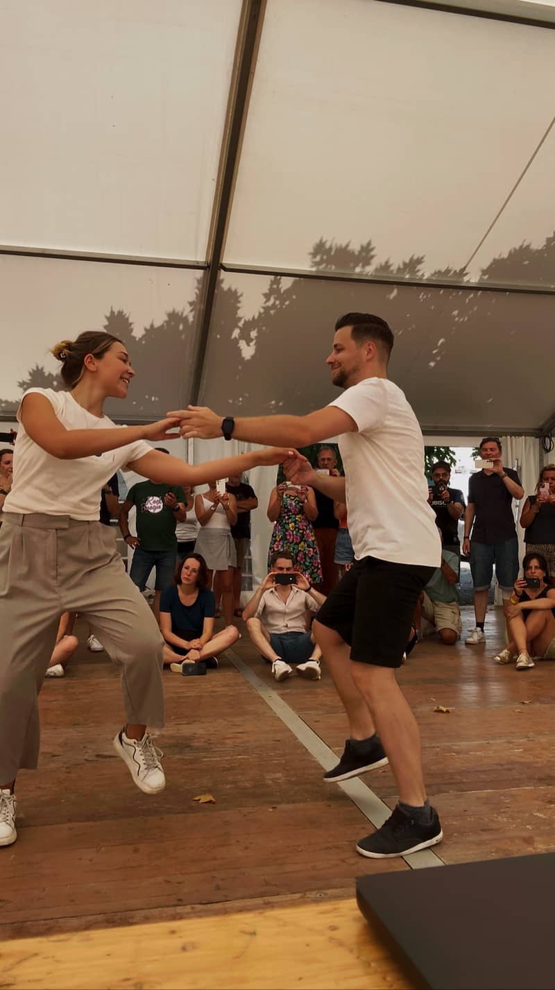 Musikalisch wurde das Festival von zwei großartigen Live-Bands begleitet, die jeden Abend für volle Tanzflächen sorgten. Natürlich gab es auch spektakuläre Shows: Neben der „Teacher Introduction“ begeisterten die Trainerpaare mit Impros und Shows. Andi & Elsa tanzten gemeinsam mit Jessy eine 3er Show.